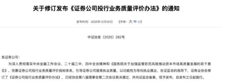 财联社12月30日讯(记者林坚)券商投行业务质量评级迎来两个重要消息,一是2025年度三项与投行业务相关的重要评级结果出炉,一个是评级体系有所调整。从评价体系的调整情况来看,时隔一年的修订,这次更突出促进券商功能发挥。